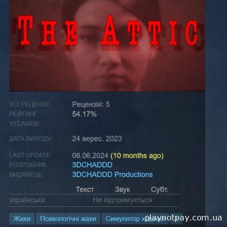 Досліджуйте дивний і таємничий комплекс, щоб знайти свого зниклого сина. Чи зможете ви пробратися крізь глибини втрати та пережити жахіття, які переслідують вас у «Горищі»? Кінематографічний досвід від першої особи з моторошним саундтреком.