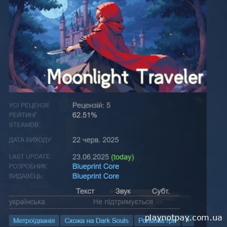 [Безкоштовно] Moonlight Traveler 23/06/2025 12:45 playnotpay.com.ua У Steam вийшла нова безкоштовна гра Moonlight Traveler Це екшн-гра, зосереджена на боях, де дівчина повертається з безодні, щоб дослідити свої власні таємниці та спокуту, потрапивши в цикл битв. Безкоштовно 0 + 0 - 0 1154