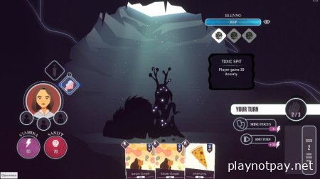 Створіть свою колоду та здібності, відповідаючи на особистісні тести, відвідуючи кімнати або медитуючи. Зіткніться зі своєю фобією та переможете її завдяки силі натхненних життям карт.