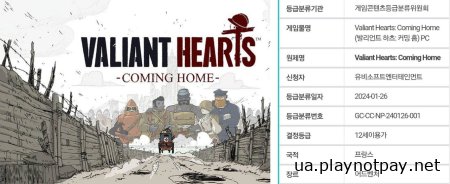 Згідно з корейською рейтинговою системою, здається, що гра Valiant Hearts: Coming Home скоро вийде на ПК і, ймовірно, також буде доступна на консолях. Це зацікавило багатьох геймерів, які чекають на нові пригоди у цій захоплюючій грі.