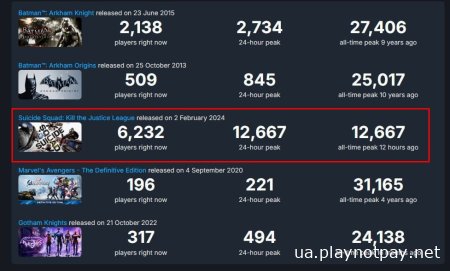 Один з показників успіху гри - це кількість гравців, які грають одночасно. У випадку з "Suicide Squad: Kill the Justice League", піковий онлайн не досяг навіть позначки в 13 тисяч гравців. Це може свідчити про низький інтерес гравців до гри або про проблеми з її запуском і функціональністю.
