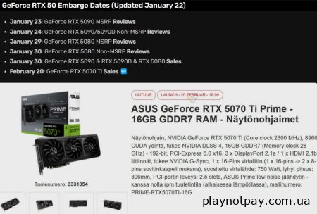 За даними Proshop, NVIDIA може випустити свою відеокарту GeForce RTX 5070 Ti 20 лютого. В даний час Proshop є єдиним великим роздрібним продавцем, який вказав на конкретну дату запуску відеокарт GeForce.