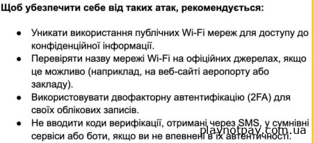 Фальшиві точки доступу в місцях, де багато людей, пропонують авторизацію через месенджери. Відправивши код, отриманий у сервісному боті, ви власноруч віддаєте доступ до акаунта.
