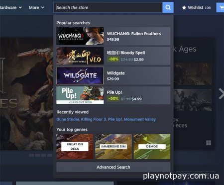 Оновлення стосуються пошуку та навігації. Так, у користувачів з'явиться можливість побачити популярні пошукові запити, повернутися до нещодавно переглянутих ігор, а також використовувати пошук за мітками, категоріями, видавцями тощо. Крім того, прямо в головному меню можна отримати доступ до рекомендацій на основі особистих вподобань. Змінилися й популярні розділи: у вкладці «Перегляд» можна побачити набір зручних блоків з добірками ігор. Наостанок — категорії стали персоналізованими.