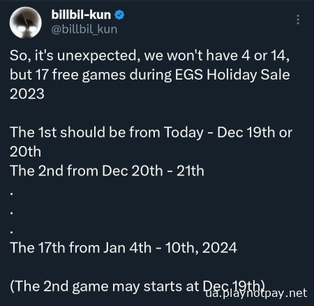 [Новини] EGS на честь свят подарують 17 ігор! 13/12/2023 18:03 playnotpay.com.ua EGS на честь свят подарують 17 ігор! Перша сьогодні Новини 0 + 0 - 0 11