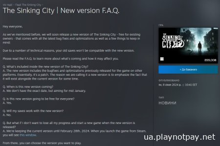 Однією з важливих новин є те, що оновлення The Sinking City у січні буде доступне безкоштовно для власників основної гри. Це означає, що гравці, які вже мають версію гри, зможуть оновити її без додаткових витрат.