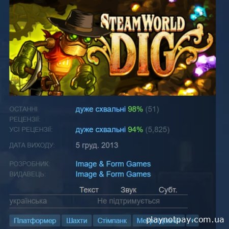 Це пригодницька гра-головоломка з сильним впливом Metroidvanian, дія якої відбувається у всесвіті SteamWorld. Вам доведеться копати глибоко в землю, збирати ресурси для покращення своїх інструментів і здібностей, боротися з ворогами, вирішувати складні головоломки та розкривати таємниці, щоб врятувати вмираюче місто.