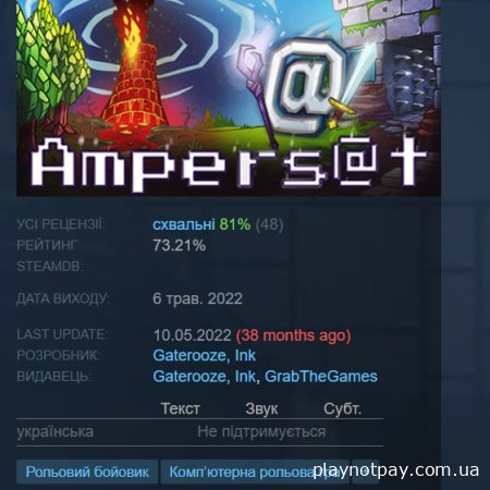 Стрілялка, рубалка, RPG-гра, що поєднує ретро та сучасні тенденції. Поєднання впливів від Gauntlet & Smash TV до Zelda & Angband, Ampersat — це рукотворна пригода, яка сподобається шанувальникам Roguelite. Боріться з ASCII-істотами в барвистих локаціях і звільняйте літери, щоб повернути мову в село!