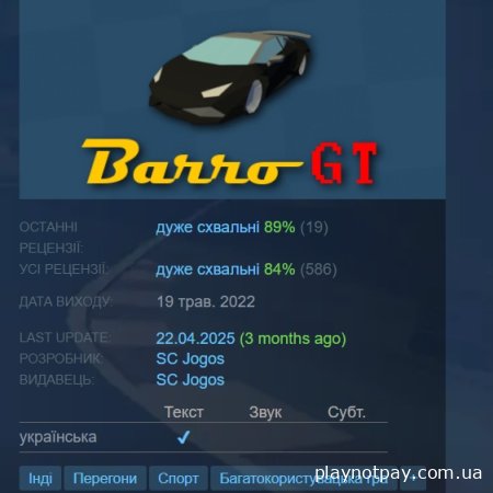 [Роздача у Steam] Barro GT 28/07/2025 20:02 playnotpay.com.ua Роздача у Steam Barro GT Це нове покоління Barro, тепер з новим стилем гоночних треків, але зі старим добрим аркадним стилем іграшкових машинок/картів! Роздача у Steam 1 + 0 - 0 1860